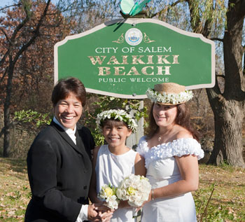 Tambry Young (left) and Suzanne King with their daughter Shylar at their wedding in Massachusetts. One of the families featured in http://www.hawaiifamilyportraits.org