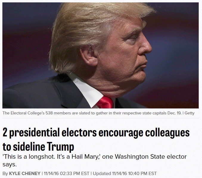 Since my birthday [Nov 8], I have prayed that someone, somehow, someday would rescue the country I love from chaos and division. I pray in gratitude for this elector’s courage and initiative.”