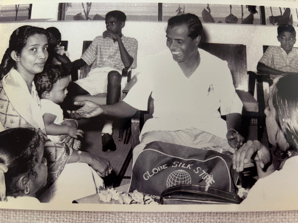 The family gathers to bid farewell as Victor Morais leaves for a tour of the United States with a group of South East Asian journalists in 1958.